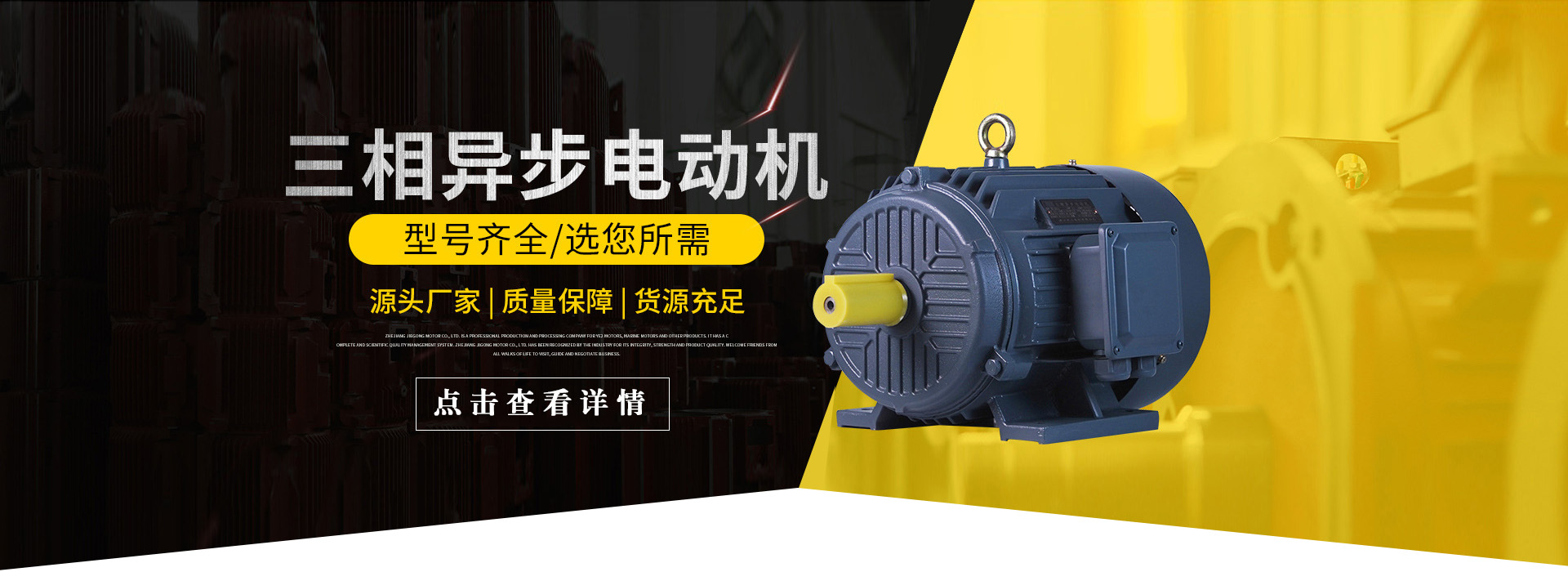 浙江杰工電機(jī)有限公司主營三相異步電機(jī)、三相電機(jī)、電磁制動電機(jī)、鋁殼電機(jī)、單相電機(jī)等,產(chǎn)品線豐富。